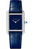 Cartier Tank Must Watch - 33.7 mm x 25.5 mm Steel Case - Blue Dial - Blue Alligator Strap - WSTA0055