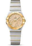 Omega Constellation Quartz 27 mm Watch - 27.0 mm Steel And Yellow Gold Case - 18K Yellow Gold Bezel - Champagne Mother-Of-Pearl Diamond Dial - Steel Bracelet - 123.20.27.60.57.001
