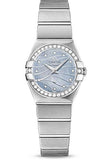 Omega Constellation Quartz Watch - 24 mm Steel Case - Diamond-Set Steel Bezel - Blue Mother-Of-Pearl Diamond Dial - 123.15.24.60.57.001