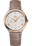 Omega De Ville Prestige Co-Axial Power Reserve Watch - 39.5 mm Steel And Red Gold Case - Ivory Silvery Dial - Taupe-Brown Leather Strap - 424.23.40.21.02.001
