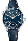 Omega Planet Ocean 600M Co-Axial Master Chronometer Watch - 39.5 mm Steel Case - Unidirectional Blue Cermaic Bezel - Black Dial - Blue Leather Strap - 215.33.40.20.03.001