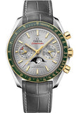 Omega Speedmaster Moonphase Master Chronometer Chronograph Watch - 44.25 mm Steel Case - Yellow Gold Bezel - Grey Diamond Dial - Grey Leather Strap - 304.23.44.52.06.001