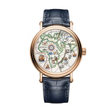 Functionality takes center stage with a dragging satellites hours display, a feature that adds a touch of modernity to the classic design. The sapphire glass crystal ensures clarity and durability, emphasizing the enduring beauty of the Métiers D'art.