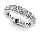 This item features exclusively high-quality natural diamonds, ensuring superior quality and ethical sourcing. For more information about the diamond quality, please do not hesitate to contact us. This beautiful vintage inspired eternity band combines the best of both worlds with a half bezel and prong setting. The rings range from 1.38 to 4.25 carats total diamond weight. It's perfect to wear alone, stacked, or to compliment another ring. Choose from multiple metal types and diamond qualities to make this the perfect eternity ring.