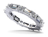 This item features exclusively high-quality natural diamonds, ensuring superior quality and ethical sourcing. For more information about the diamond quality, please do not hesitate to contact us. This fashionable diamond anniversary ring features a mix of baguette and round diamonds in a modern, four prong setting. Select yours in your choice of 14k or 18k yellow, rose or white gold or platinum.