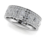 This item features exclusively high-quality natural diamonds, ensuring superior quality and ethical sourcing. For more information about the diamond quality, please do not hesitate to contact us. Stun everyone around you with an eternity ring fit for a red carpet event! This eternity ring showcases beautiful princess cut stones in a channel setting surrounded by an elaborate display of round diamonds set with prongs. Customize your red carpet look with your preferred metal type, total carat weight, and diamond quality.