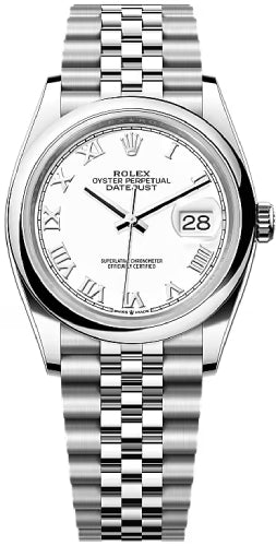 Rolex Datejust 36 Stainless Steel White Roman Dial & Smooth Domed Bezel Oyster Bracelet 126200