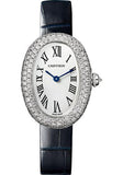 Cartier Baignoire 1920 Watch - 32 mm White Gold Diamond Case - Navy Blue Strap - WJBA0015