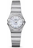 Omega Ladies Constellation Quartz Watch - 24 mm Brushed Steel Case - Diamond Bezel - Mother-Of-Pearl Diamond Dial - 123.15.24.60.55.002