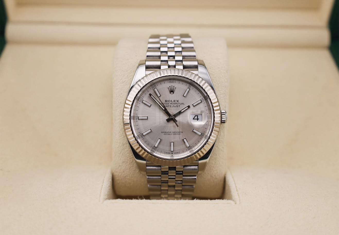 Rolex Datejust 41 White Gold/Steel Silver Index Dial Fluted Bezel Jubilee Bracelet 126334 -