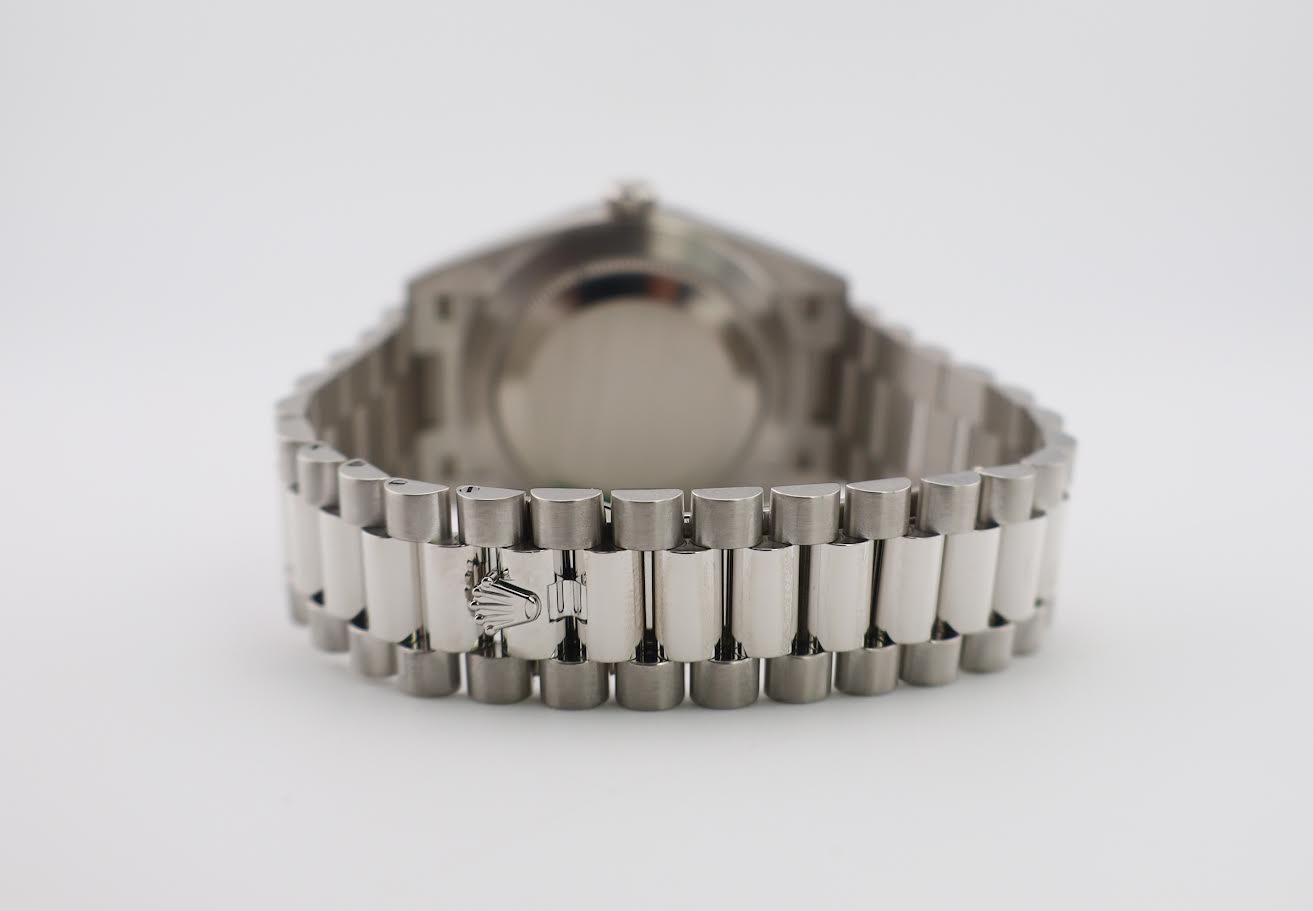 Rolex Day-Date 40 Platinum Ice Blue Diagonal Motif Dial & Smooth Bezel President Bracelet 228206 -