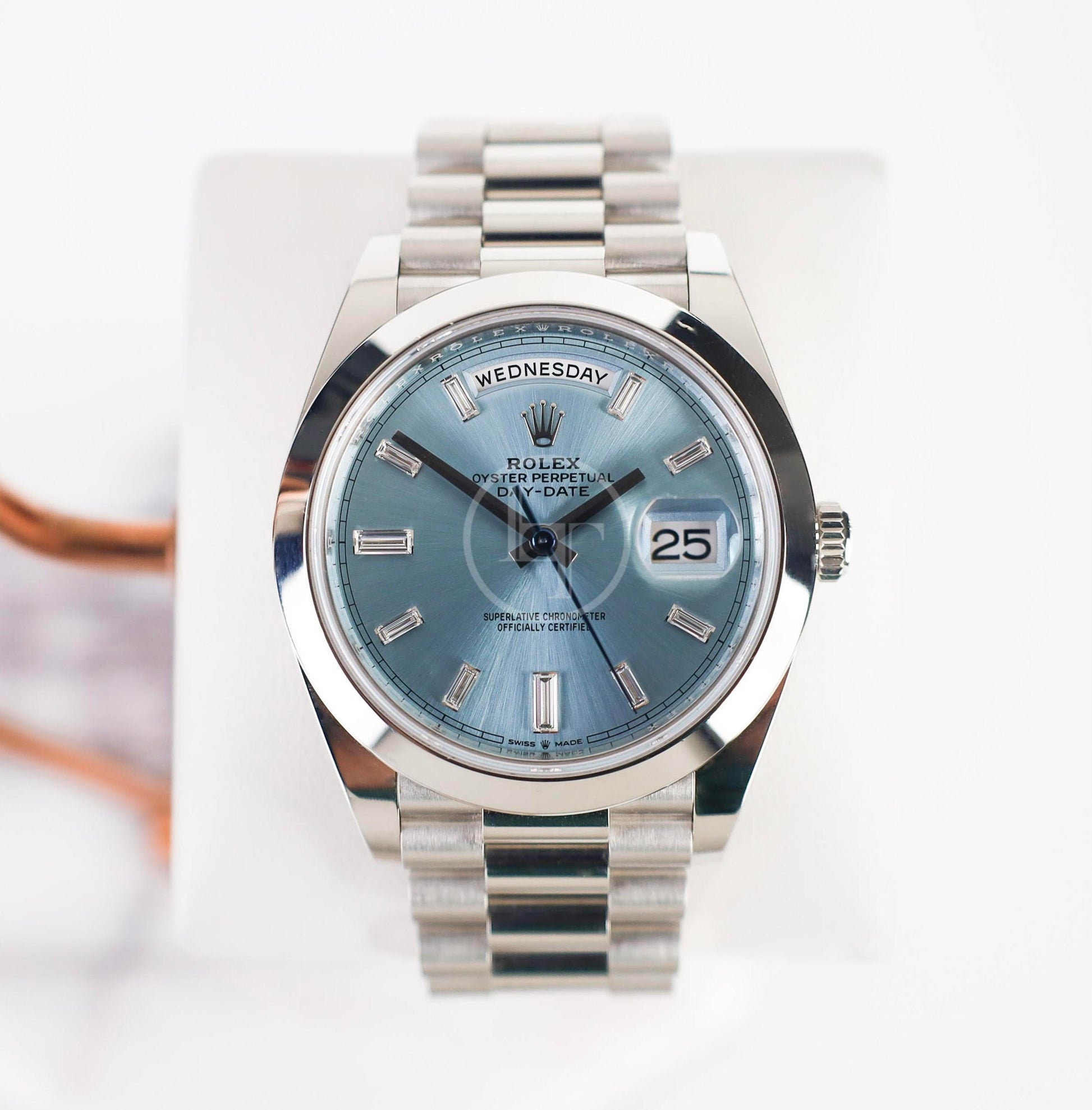 Rolex Day-Date 40 Platinum Ice Blue Diamond Dial & Smooth Bezel President Bracelet 228206 -